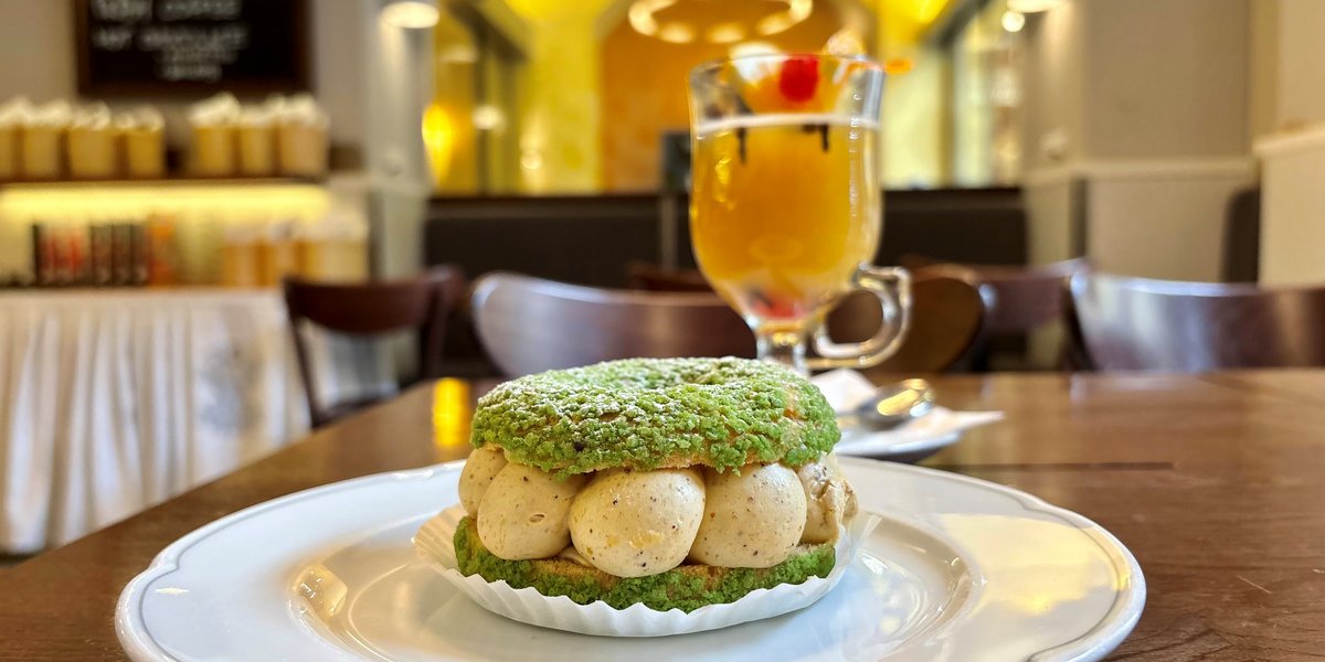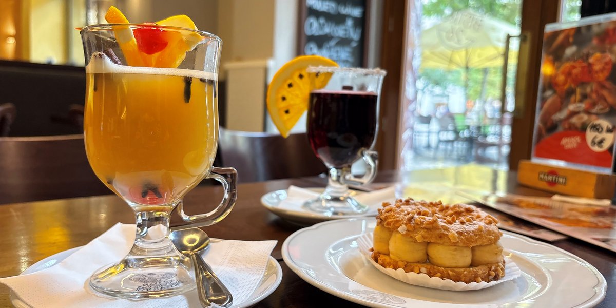 French desserts and hot drinks in Prague center